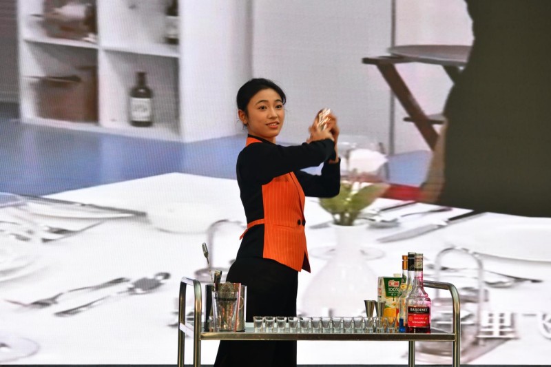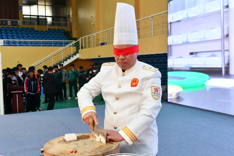 技能展示环节,各二级学院特色技能轮番上演、目不暇接。汽车工程学院的“奇瑞超级电混DHT系统拆装”展示,尽显选手扎实专业功底;数字信息学院“多旋翼无人机实景飞行表演”精准灵动,引来全场瞩目;烹饪旅游学院“五彩变幻鸡尾酒”调制技艺精妙、赏心悦目,绝技“蒙眼切菊花豆腐”更是惊艳全场,薄如蝉翼的豆腐丝将“工匠精神”诠释得淋漓尽致。
